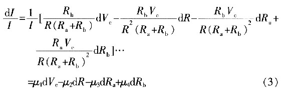 但在實際情況下電阻的溫度系數(shù)和基準電壓的溫度系數(shù)將影響輸出電流的穩(wěn)定性。對式(2)進行全微分并化簡可得電流穩(wěn)定度的表達式: