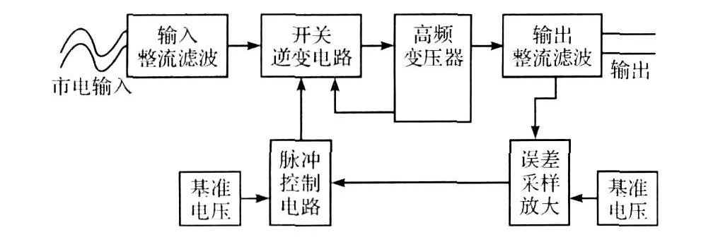 市電經(jīng)過一次整流濾波后變成直流電壓, 送到開關(guān)逆變電路。逆變電路將直流變成幾百赫茲到幾千赫茲的高頻矩形波, 高頻矩形波通過高頻變壓器耦合到二次線圈以得到小電壓交流電, 此交流電經(jīng)過二次整流濾波后輸出以驅(qū)動負載。同時, 該輸出經(jīng)過誤差放大電路采樣取得的輸出電壓值又回饋給脈沖控制電路。脈沖控制電路將回饋的電壓值與基準電壓值比對后得出一個脈沖占空比的相應改變動作。在開關(guān)動作過程中會產(chǎn)生很強的噪聲, 它們通過電源線以共?;蛘卟钅7绞较蛲鈧鲗А4送?, 開關(guān)電源也是一個敏感的器件, 因此由電網(wǎng)侵入的外部噪聲傳遞到內(nèi)部電子電路過程中也會產(chǎn)生干擾。所以在設計一款開關(guān)電源之初就應該考慮到電磁干擾。