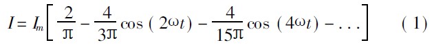 從上式可以看出, I 除了一直流分量之外, 還包含一系列的高頻諧波的交流分量(如圖2 所示波形)。這樣不但影響了電源線上的電流, 并使電流發(fā)生畸變, 同時也產(chǎn)生射頻干擾。