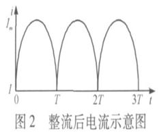 在開關(guān)電源中, 工頻交流電流經(jīng)過整流橋后, 不再是單一頻率點的交流電流, 而是單向的脈動直流電流,其波形如圖2所示, 利用傅里葉變換可得: