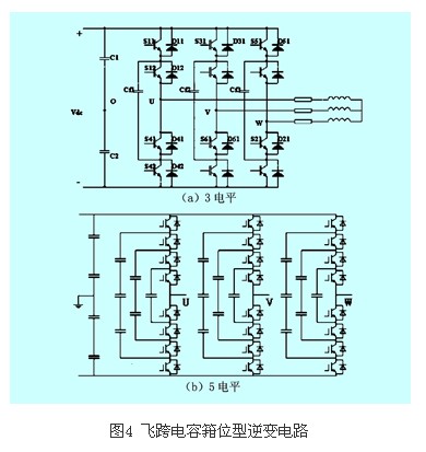 1992年,t·a·maynard和h·foch提出了如圖4(a)所示結(jié)構(gòu)的飛跨電容箝位型逆變電路,其特點是用箝位電容代替圖3中所述的箝位二極管,直流側(cè)電容不變,其工作原理與二極管箝位型逆變器相似。