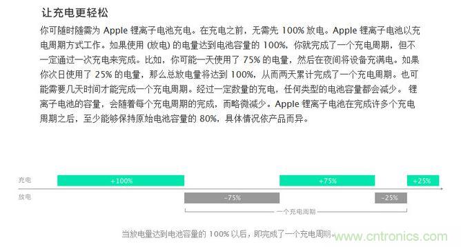 換句話說,不管你充電和放電多少次,只要總的放電電量沒有達(dá)到設(shè)計(jì)容量的100%,就沒有耗費(fèi)一次循環(huán)壽命,只有放電達(dá)到容量的100%才會(huì)計(jì)算下一個(gè)循環(huán)周期,和充電頻繁與否沒有直接聯(lián)系。