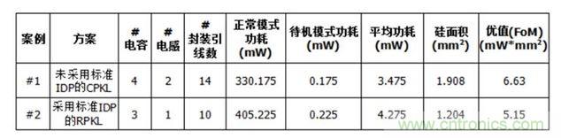 表1就以下要素總結(jié)了兩個案例所存在的性能差別:物料清單(BoM)、硅面積、功耗和FoM值。