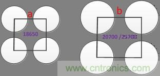 由于21700 /20700 /20650電池容量的增加在實(shí)際PACK設(shè)計(jì)中需要考慮單支電池安全失控后對(duì)周圍電池的影響及問題的可控性,所以需要重新計(jì)算電池之間的“安全設(shè)計(jì)距離”,這個(gè)距離肯定要大于18650的(b 》 a),這進(jìn)一步增加了體積。