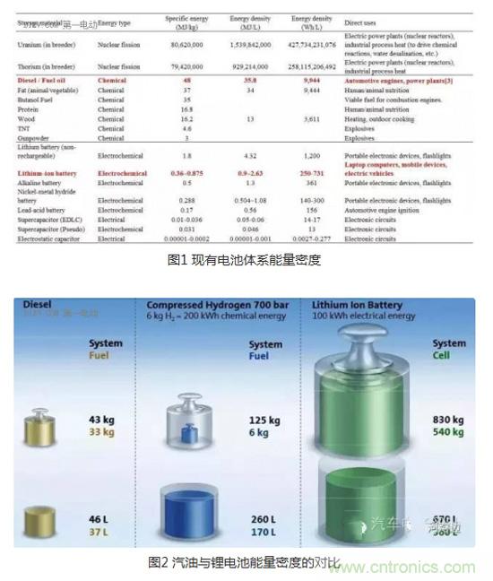 從下圖(圖1 汽油與鋰電池能量密度的對(duì)比)來(lái)看,鋰離子電池的能量密度和體積能量密度確實(shí)比較低。開(kāi)安全環(huán)保的電動(dòng)車(chē)的人就回過(guò)頭來(lái)指著搞電池的說(shuō),咋不像摩爾定律那樣,18個(gè)月就把電池能量密度翻個(gè)番,鋰電池不行,咱就換個(gè)其他的,誰(shuí)行誰(shuí)上。這還真不能那么急,咱來(lái)看看這些個(gè)能進(jìn)行充放電的電池都啥水平?再打開(kāi)地圖找一找,看看是不是有啥錯(cuò)過(guò)的寶貝,看看是不是那么容易,鋰電池是不是能達(dá)到燃油車(chē)的能量密度水平。