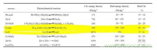 CRABTREE 2015年在The energy-storage frontier : Lithium-ion batteries and beyond中總結(jié)了過(guò)去25年松下18650電芯能量密度的變化。經(jīng)過(guò)千辛萬(wàn)苦,現(xiàn)在電芯實(shí)際R占比(Real/Cal.)已經(jīng)達(dá)到了61%左右,實(shí)際電池系統(tǒng)加上管理系統(tǒng)、冷卻系統(tǒng)、引線等,成組實(shí)際能量密度會(huì)更進(jìn)一步降低。下表例舉了一部分現(xiàn)有實(shí)際電池能量密度,可憐的明日之星鋰硫電池才10%左右的理論容量發(fā)揮;按照R max = 61%算,理論能量密度最高的鋰空的能量密度大概為3182 Wh/kg。