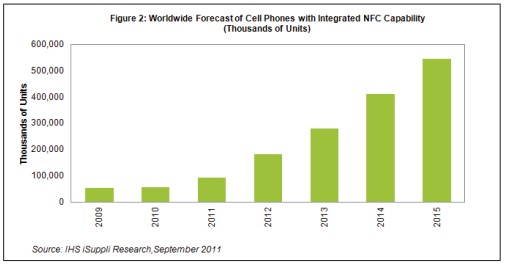 - 2015年采用NFC技術的手機出貨量將是是2010年10倍