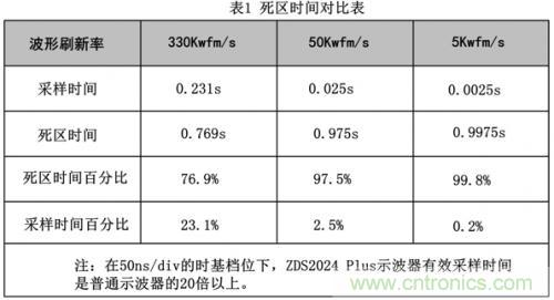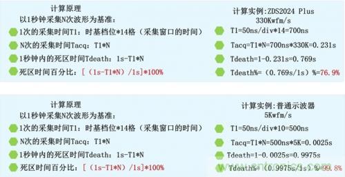 圖5 不同示波器死區(qū)時間對比