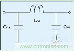 接地層確定后,將所有的信號地以最短的路徑連接到地層非常關(guān)鍵,通常用過孔將頂層的地線連接到地層,需要注意的是,過孔呈現(xiàn)為感性。圖3所示為過孔精確的電氣特性模型,其中Lvia為過孔電感,Cvia為過孔PCB焊盤的寄生電容。如果采用這里所討論的地線布局技術(shù),可以忽略寄生電容。一個1.6mm深、孔徑為0.2mm的過孔具有大約0.75nH的電感,在2.5GHz/5.0GHz WLAN波段的等效電抗大約為12Ω/24Ω。因此,一個接地過孔并不能夠為RF信號提供真正的接地,對于高品質(zhì)的電路板設(shè)計,應(yīng)該在RF電路部分提供盡可能多的接地過孔,特別是對于通用的IC封裝中的裸露接地焊盤。不良的接地還會在接收前端或功率放大器部分產(chǎn)生有害的輻射,降低增益和噪聲系數(shù)指標。還需注意的是,接地焊盤的不良焊接會引發(fā)同樣的問題。除此之外,功率放大器的功耗也需要多個連接地層的過孔。