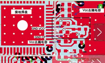 在本文的后面部分將會看到,PLL的實現(xiàn)在系統(tǒng)設(shè)計中總是面臨巨大挑戰(zhàn),要想獲得滿意的雜散特性必須有良好的地線布局。目前,IC設(shè)計中將所有的PLL和VCO都集成到了芯片內(nèi)部,大多數(shù)PLL都利用數(shù)字電流電荷泵輸出通過一個環(huán)路濾波器控制VCO。通常,需要用二階或三階的RC環(huán)路濾波器濾除電荷泵的數(shù)字脈沖電流,得到模擬控制電壓??拷姾杀幂敵龅膬蓚€電容必須直接與電荷泵電路的地連接。這樣,可以隔離地回路的脈沖電流通路,盡量減小LO中相應(yīng)的雜散頻率。第三個電容(對于三階濾波器)應(yīng)該直接與VCO的地層連接,以避免控制電壓隨數(shù)字電流浮動。如果違背這些原則,將會導(dǎo)致相當大的雜散成分。