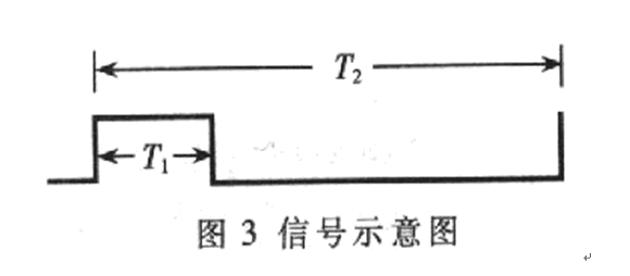 在采用數(shù)字信號(hào)進(jìn)行測(cè)量時(shí),只要利用微處理器的計(jì)數(shù)器/定時(shí)器端口分別采集信號(hào)的工作周期脈寬T1和工作周期的時(shí)間長(zhǎng)度T2,利用公式(1)就可以得出被測(cè)加速度的值。計(jì)算公式為: