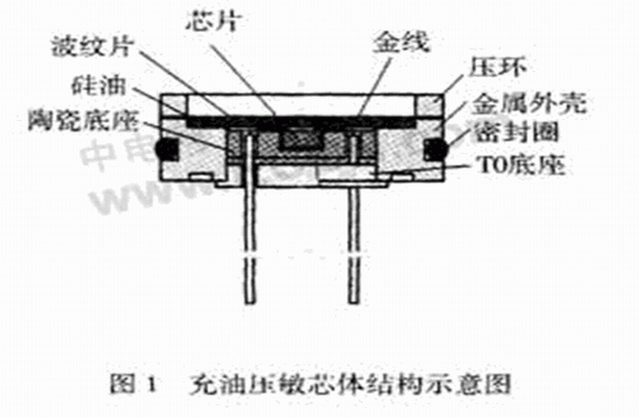 MEMS壓力傳感器的一一種重要封裝形式是采用充油的不銹鋼結(jié)構(gòu),稱(chēng)為充油壓敏芯體,其基本制造工藝過(guò)程包括貼片、引線(xiàn)、封裝殼體、充油及二次組裝等。圖1是充油壓敏芯體結(jié)構(gòu)示意圖,圖2是壓力傳感器二次封裝樣品。