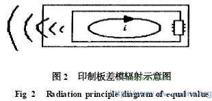 式中l(wèi)為短單極天線長(zhǎng)度,共模電壓轉(zhuǎn)換成了差模電流i。減小地電壓和將差模電流旁路到地可減小共模輻射。