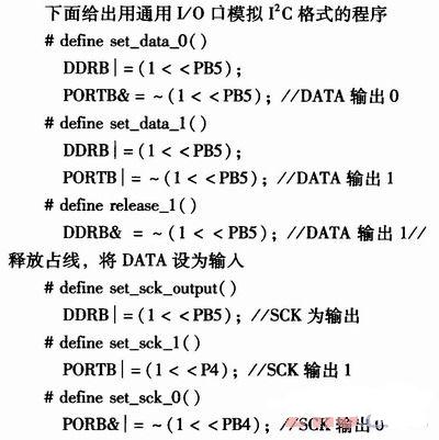 微處理器采用二線串行數(shù)字接口和傳感器進行通信,硬件接口非常簡單;然而,通信協(xié)議是芯片廠家定義的,所以在軟件設(shè)計中,需要用微處理器通用I/O口模擬通信協(xié)議.
