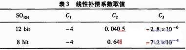 式中,RHlinear為經(jīng)過線性補償后的濕度值,SORH為相對濕度測量值,C1,C2和C3為線性補償系數(shù),取值如表3所示。