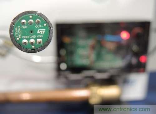 意法半導(dǎo)體(STMicroelectronics;ST)展示了一種能夠拾取20Hz至80KHz訊號(hào)的MEMS麥克風(fēng),可深層監(jiān)聽(tīng)超音波頻譜,以檢測(cè)建筑物中的管線(xiàn)泄漏等故障情況。如同在Sensor Expo展場(chǎng)的其他傳感器一樣,這款低于1美元的組件目的在于將數(shù)據(jù)串流傳輸?shù)綀?zhí)行嵌入式分析的微控制器(MCU)。