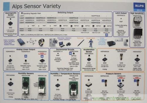 日本阿爾卑斯電氣株式會(huì)社(Alps Electric)展示其傳感器組合(下圖),這同時(shí)也可作為傳感器領(lǐng)域應(yīng)用多樣化的一個(gè)指標(biāo)。該公司并未在活動(dòng)中發(fā)表新芯片,而是與網(wǎng)關(guān)供貨商、美國(guó)云端運(yùn)算軟件供貨商Mode連手展示使用其模塊開(kāi)發(fā)的端對(duì)端物聯(lián)網(wǎng)解決方案。